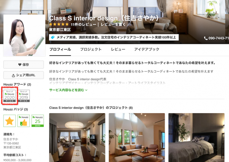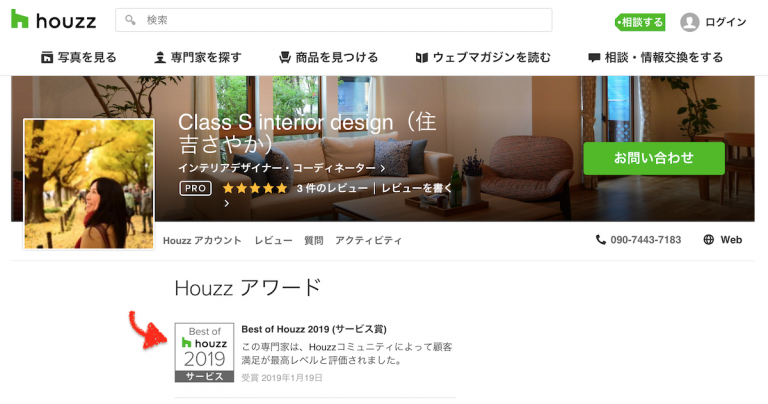 東京の個人向けインテリアコーディネーター、Class S interior designの住吉さやかです。今年もベスト・オブ・Houzz受賞のお知らせが届きました!ありがたいことにClass Sを始めた年から7年連続の受賞です。(去年の実績に基づき、今年の数字が入る仕組みです)