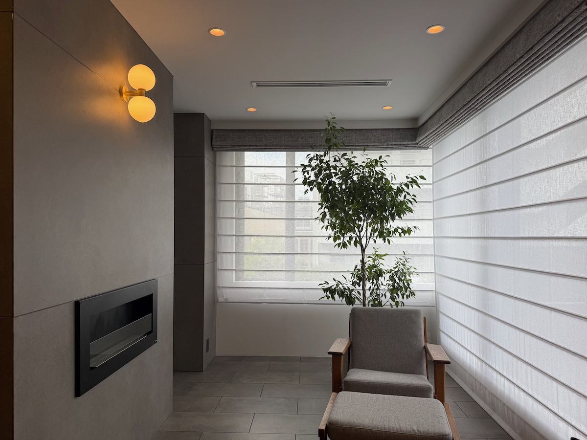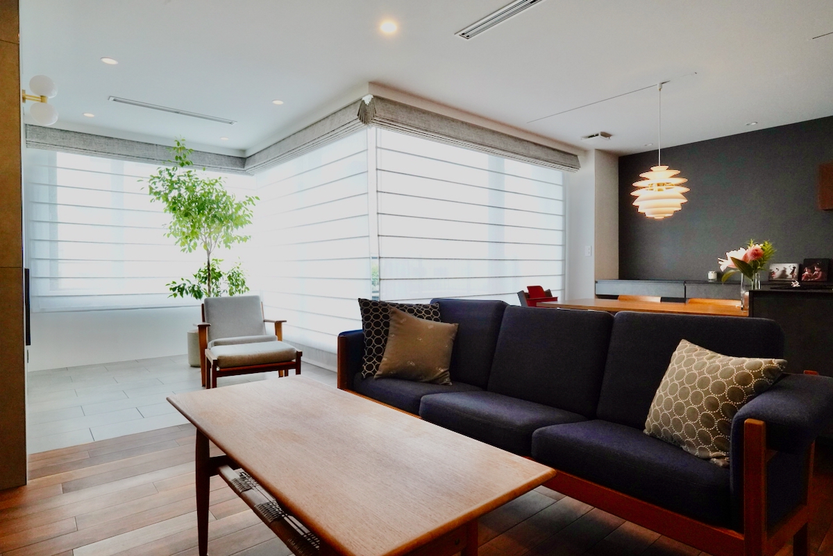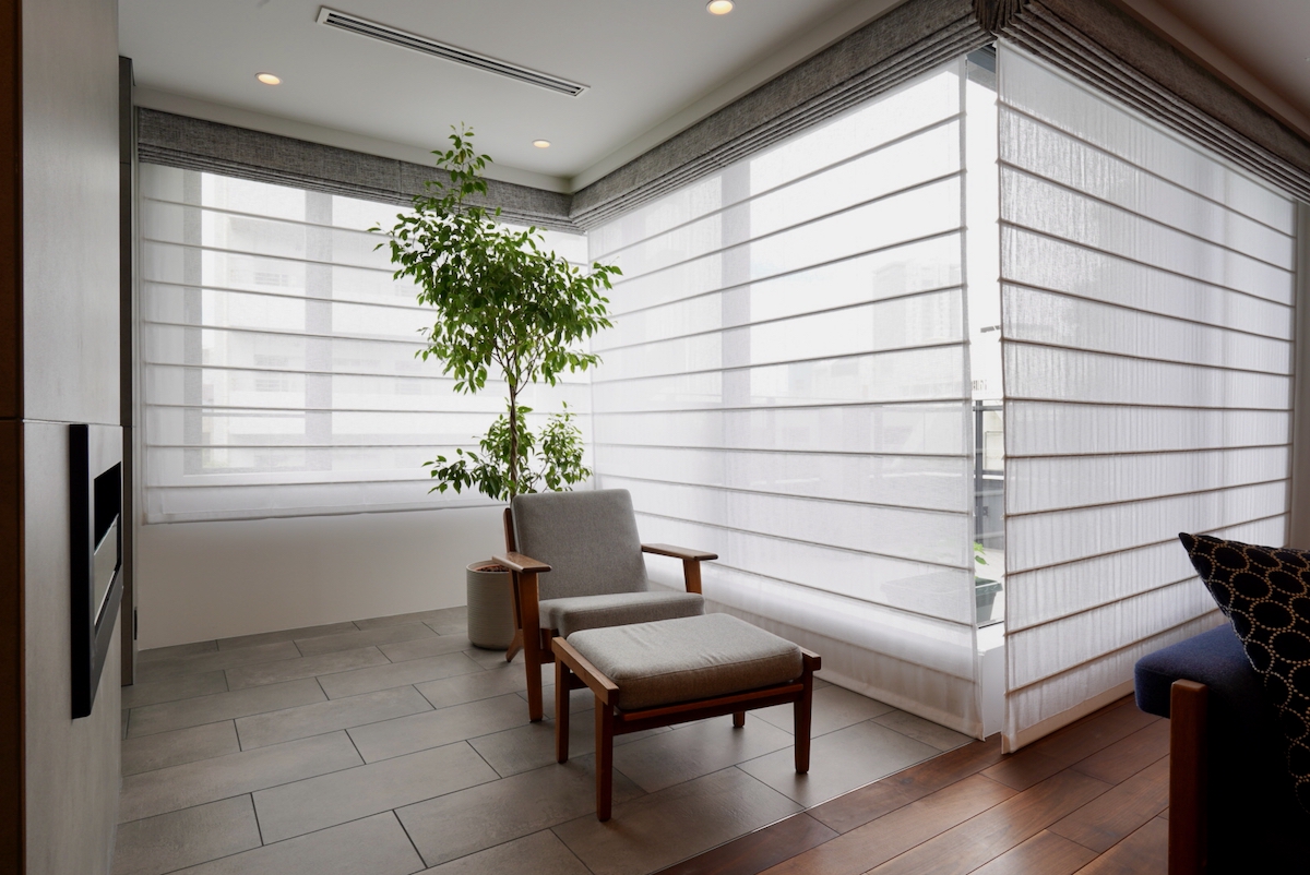 クライアントが窓周りに求めていたのは、「全体のインテリアに調和するシンプルで上質なデザイン」「日中の光をしっかり取り入れること」「昼間、外から室内が見えにくいこと」、そして「スマートホーム化」でした。