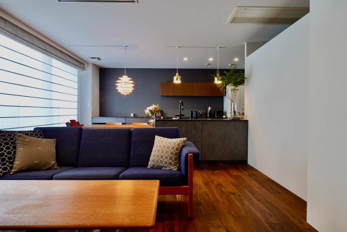 スケルトンリフォームの途中で相談をいただき、セカンドオピニオンとして図面や仕様のチェックに加え、窓周りのコーディネート、家具や照明の手配を担当しました。